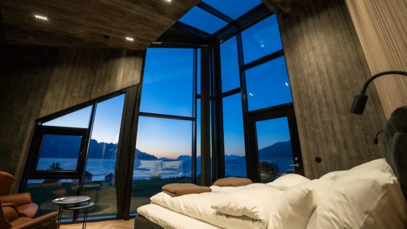 Além disso, o hotel de luxo na Noruega em Rotsund oferece acesso interno para a recepção e o restaurante, que serve um menu em três etapas com produtos locais. No momento da aurora boreal, os hóspedes são avisados por um alarme e as luzes do hotel são apagadas para proporcionar a melhor experiência de observação da aurora boreal.