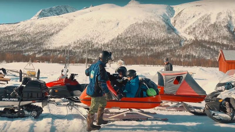 Você será conduzido por um guia local experiente até o topo da montanha, onde uma tenda lavvu aquecida estará esperando por você. Dentro da tenda típica, sopas e bebidas quentes serão servidas. Se você tiver coragem, terá a oportunidade de dirigir o snowmobile sozinho, quando estiver perto do lago congelado, uma experiência única para seu destino de inverno.