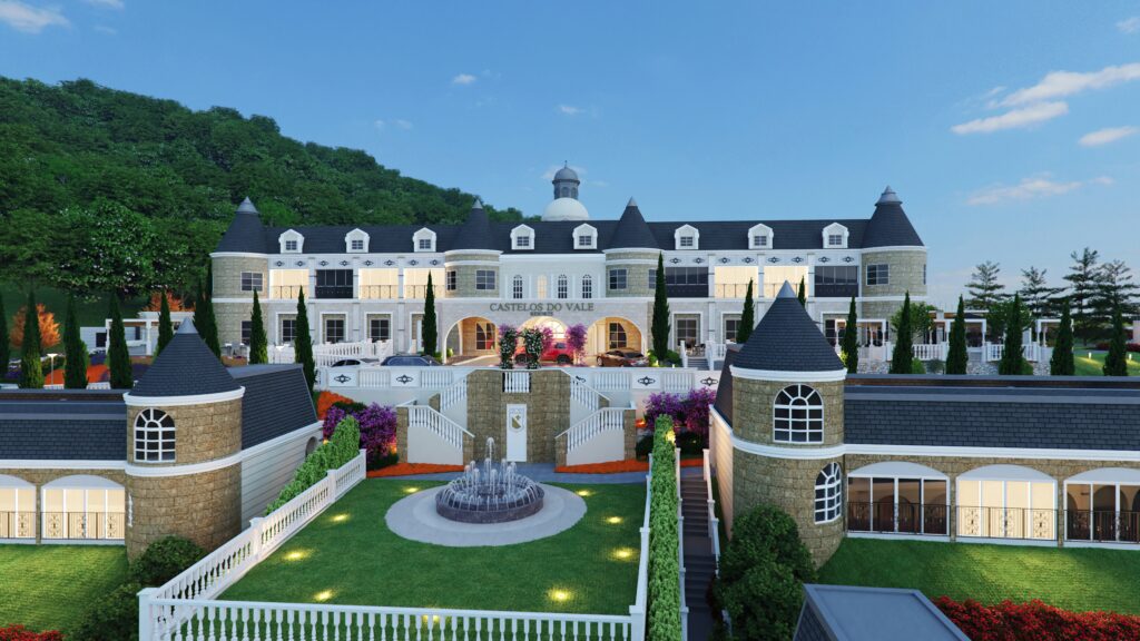 A comercialização teve início neste mês de novembro e a primeira etapa tem previsão de inauguração para novembro de 2025. Serão 68 unidades distribuídas em Castelo Temático, Palacete Real ou Palacete Duplex, com jacuzzi na sacada. Com arquitetura Renascentista, o complexo terá em sua área comum: SPA, restaurante principal, o Cave com adega, piano-bar, Castelo Kids, piscina, jardim temático, fonte dos desejos e muito mais! O sistema de hospedagem será opcional aos clientes, que poderão contratar pensão completa, meia pensão ou somente café da manhã.
